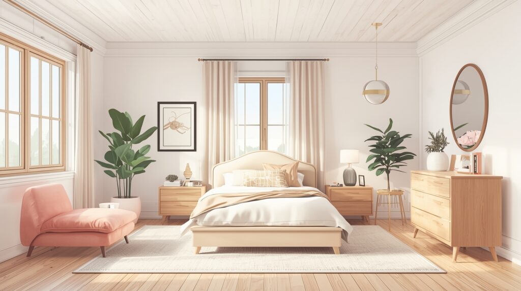 Plants breathe life into any bedroom and create a refreshing, calming environment. Choose easy-care varieties like succulents, pothos, snake plants, or peace lilies. These options thrive with minimal maintenance, making them perfect even if you’re not naturally plant-savvy.